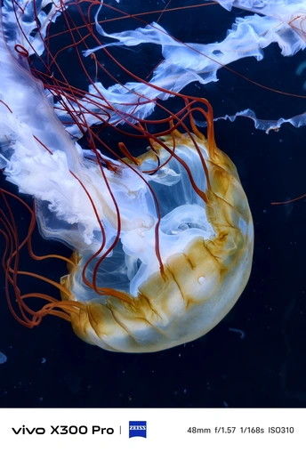 白黄渐变晕染,镜头捕捉水母的凝润质感,藏着深海的纯粹与灵动。