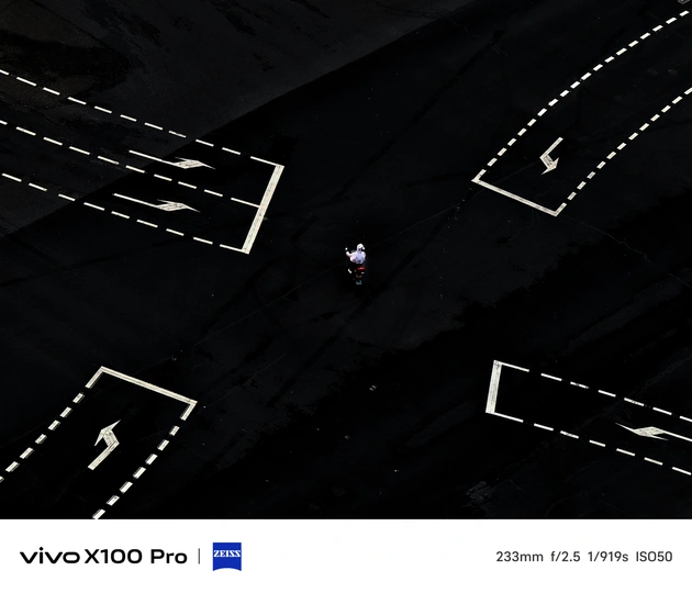 黑幕般的场域上,白色标线划开几何秩序,像沉默世界里的隐秘指引。渺小的身影嵌在空旷里,成了规则中的鲜活注脚——冷调的黑与锐利的白撞出张力,每一道线都是未说出口的方向,而人是这宏大构图里,唯一的生动变量。