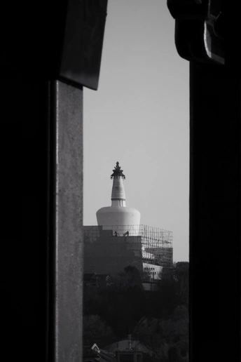 垂枝筛碎云影,白塔裹着脚手架偷闲,檐角兽脊浸在湖光里。人影是暗调,水波是软的,连风都裹着老北京的慢。 你有没有哪个公园,是情绪的避风港?