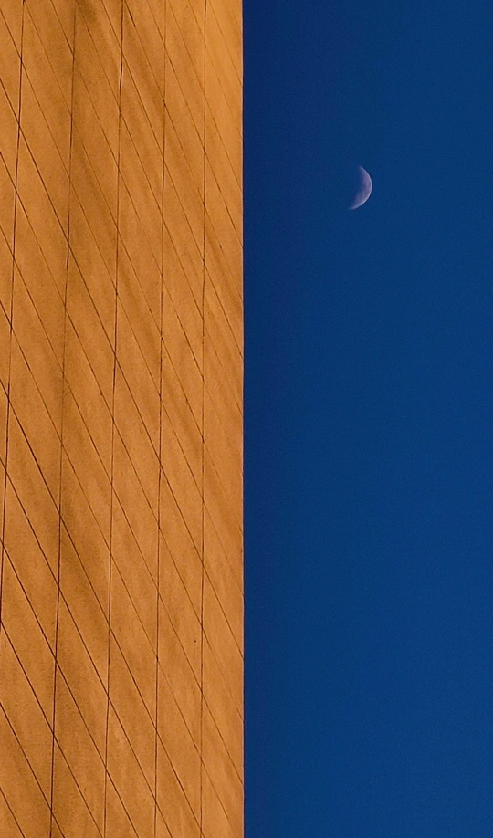 小区楼房的墙面➕蓝天➕弯弯的月亮