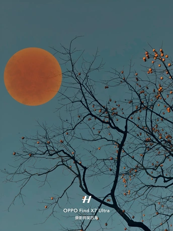枝桠是岁月的笔触,画了满树的橙黄,月亮是恰好路过的调色盘,轻轻一蘸,就把整个傍晚,都调成了暖到心底的模样