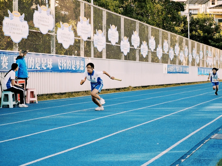 跑道被日光晒得发烫,接力棒传递着少年的滚烫心跳。风掀起校服衣角,脚步声与呐喊声交织成青春的交响——这一棒,是速度,是信任,是属于我们的滚烫时光。