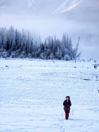 雪把世界都染成了安静的白, 风裹着雾漫过林梢, 只有那抹红, 在冰天雪地里踩出细碎的声响, 像给这沉默的冬日, 递了一封带着温度的信。