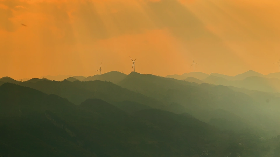 云层撕开温柔的裂缝, 神明把一束金绸洒向人间, 风车在雾霭里转成慢镜头, 远山踮脚接住这岁末的光。 这是一幅朦胧画, 是赶路时撞见的惊喜, 虽有未及圆满的通透, 但正是这些不完美的褶皱里, 藏着下一场日出的伏笔。