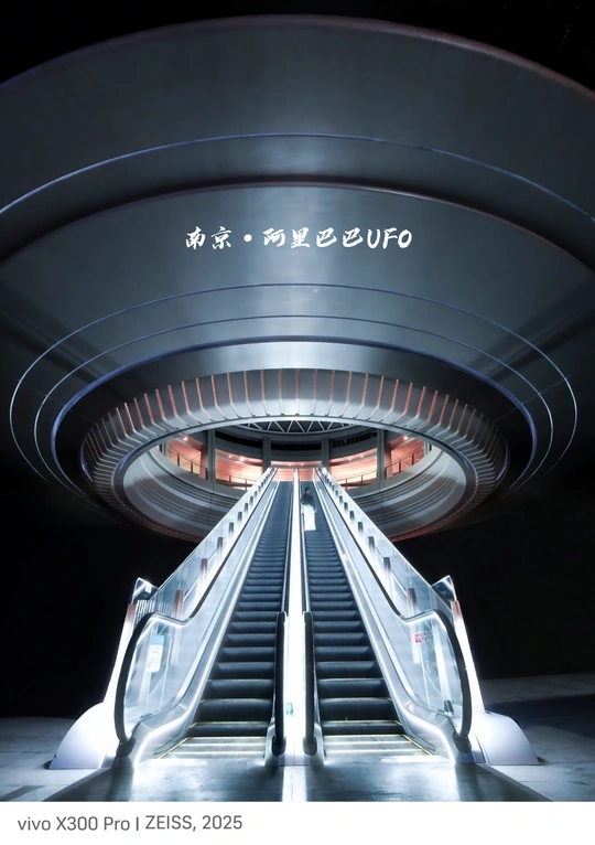 在南京阿里中心的夜里,这架扶梯成了“UFO”的舷梯——环形的光带像宇宙的涟漪,把金属的冷和暖灯的柔揉成科幻的褶皱。 每一步向上,都像在钻进未来的舱门,城市的科技感,就藏在这旋转的光里,等路过的人拾走一捧星际的风。 导航:南京建邺区阿里巴巴总部 时间:每晚18点开始亮灯 地铁:7号线坐到永初路地铁站,8号口出。 ❗两边现在有广告牌了,多少有点成片效果[笑哭R]