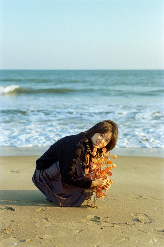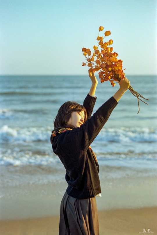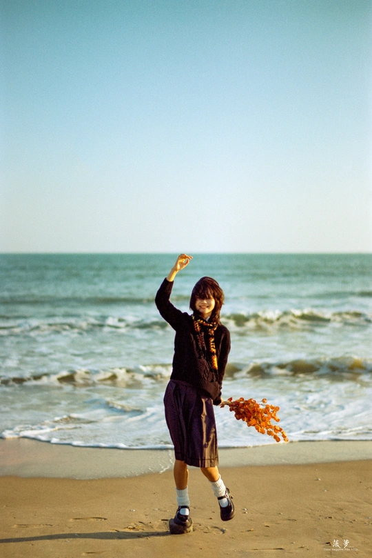 夕阳熔金,倾泻于海面。而我怀中,是盈捧的栾树果,像拥着一团被晚风浸染的霞光。它们挤挨着,鹅黄、胭粉与绯红交织,每一枚蒴果都是一盏小小的灯笼,盛放过夏日的烈阳与蝉鸣。海风拂过我的发梢,浪潮声里,我仿佛抱住了那个喧嚷季节最静美、最温暖的核。所有关于夏天的记忆,都在这一捧沉甸甸的暖意里,安然落脚。 出镜:小怪|组织策划:@一口老郭 配方:尼康F100|电影卷5203|尼康58/1.4G|手工冲洗(卤化一切ECN-2)|自扫描(Plustek OpticFilm 8100)