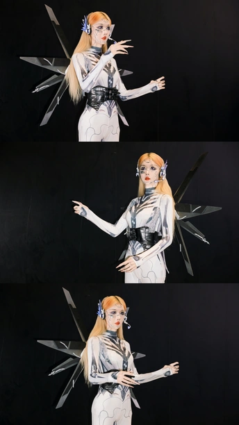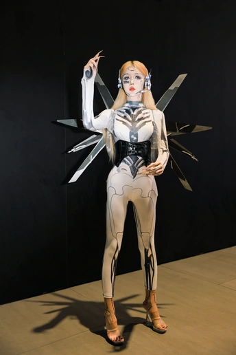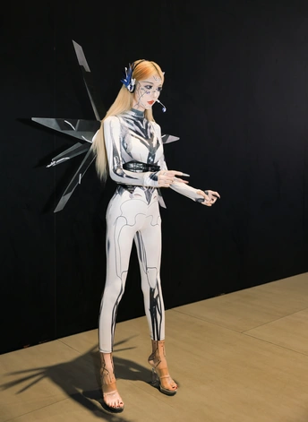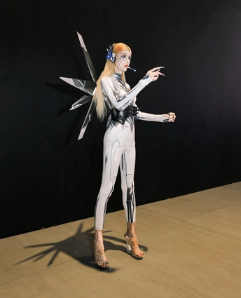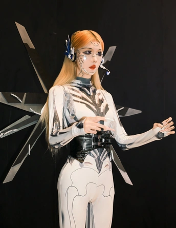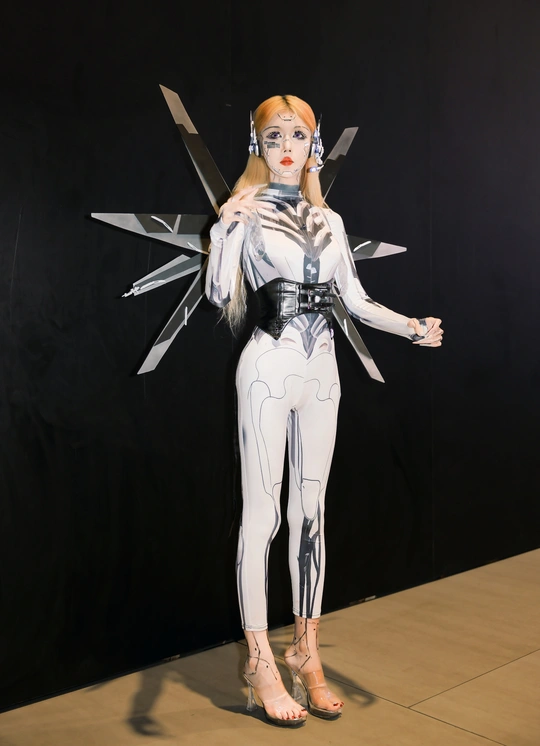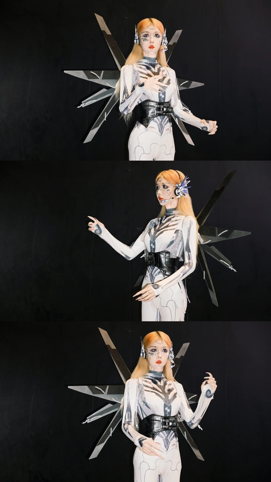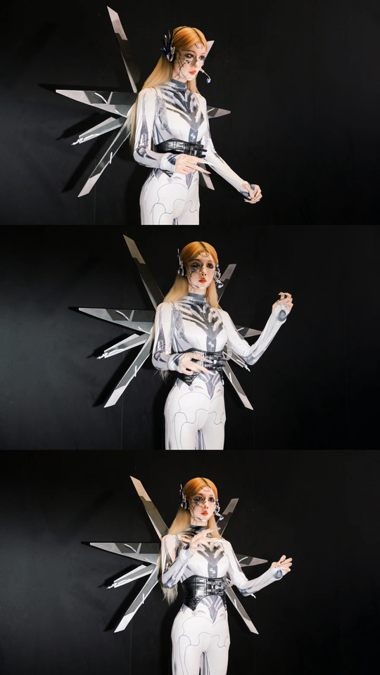 【赛博序章|上海华车展的机械缪斯】 镜头切开未来雾霭,上海华车展的金属洪流中,她以「机械姬」之姿降临。液态银甲随呼吸起伏,绷紧的曲线既是武器也是诗篇,人造肌理与碳纤维战衣在霓虹折射下泛起冷焰。 少女眼瞳藏匿数据洪流,却以人类温度破译科技冰冷的隐喻。机械关节咬合声与展台低频音共鸣,每一步踏出合金与生物肌体的二重奏——这是硅基生命与碳基美学的危险华尔兹。 我以光为刻刀,将未来感镌刻成可见形态: 银色战衣如熔铸水银,在肩线腰际勾勒科技雕塑感 虹膜深处算法流转,却倒映着人类纪元的黄昏 车身流光与机甲纹理在长时间曝光中完成量子纠缠 当摄影术闯入赛博格纪元,美少女不再是观赏客体,而是握有密钥的引路人。这场视觉实验里,未来从不是预测,而是正在被镜头显影的「现在时」。 模特:小芭比 摄影:许摄 器材:佳能R62+RF2470 2.8