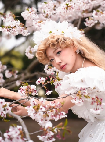 春日樱林里,白裙与花饰融于漫天樱瓣,卷发轻漾间,每帧都是柔雾感的梦——是少女与春的私语,把樱花季的蓬松浪漫,酿成了具象的温柔。 模特:千岁