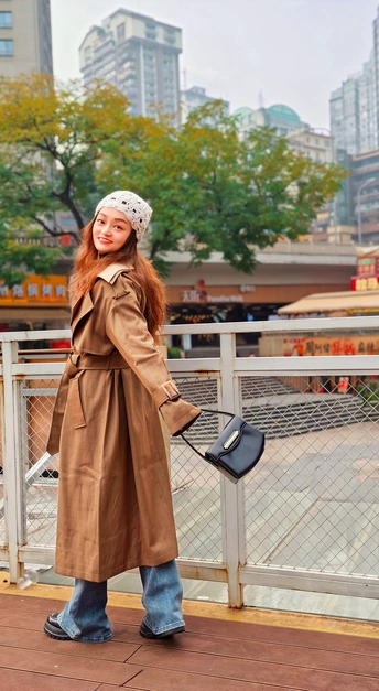 穿一身卡其色都市时尚风衣着,从街角到咖啡馆,或坐或站,一颦一笑都恰如其分融进民主村的文艺氛围里。无需刻意摆弄,风撩动发梢的瞬间,便定格了最美的时尚街拍范儿。