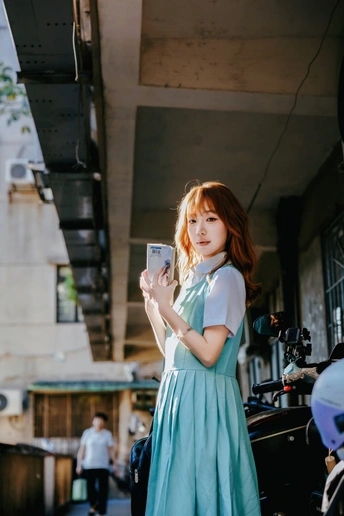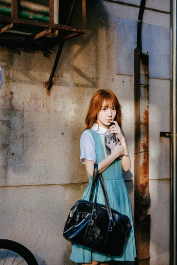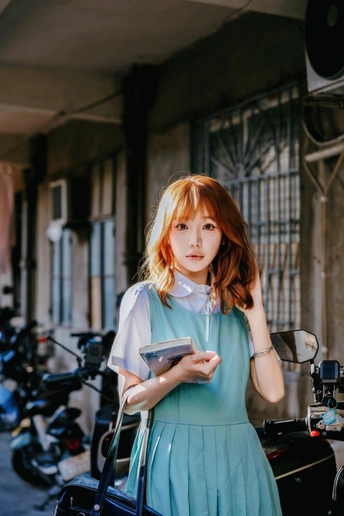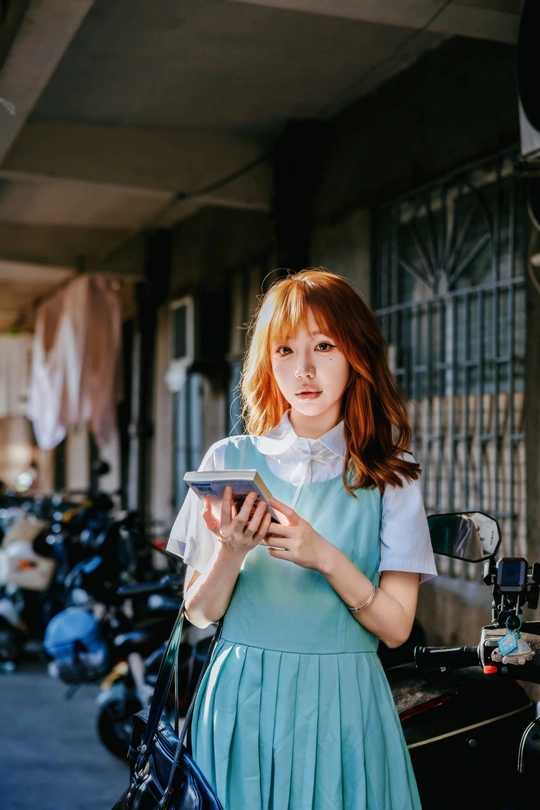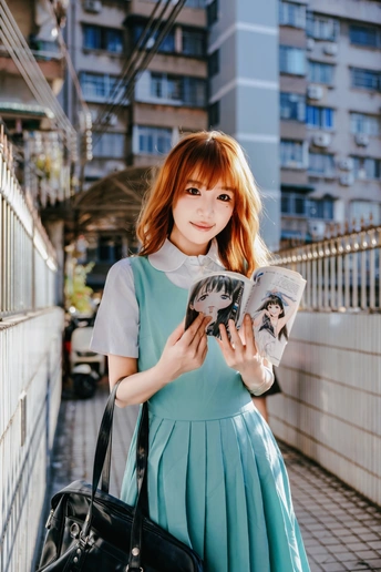 《青街漫游》 出镜:丸子树 地点:广州市象岗山社区 红发与书页在旧街口摇曳,百褶裙摆扫过摩托车群的金属光泽。她怀抱漫画杂志穿过砖墙光影,让日常场景长出柔软的文学根系。