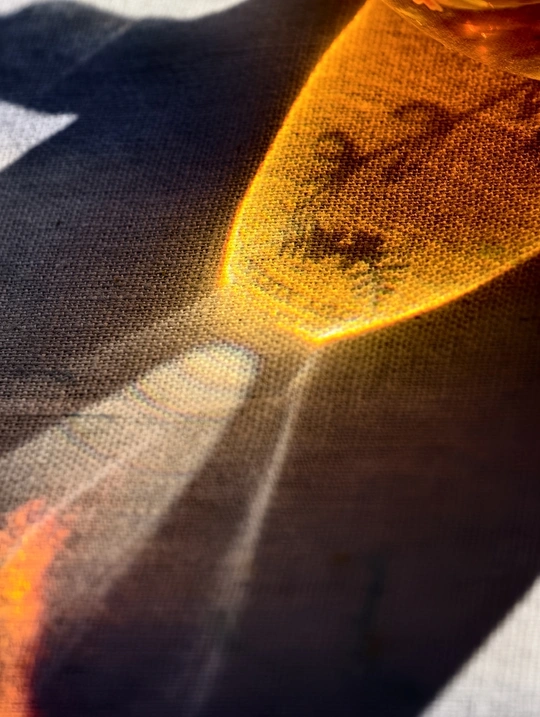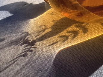 茶盏把日光滤成流动的琥珀, 每一缕碎影都在布纹里, 洇着茶烟的软, 像把整个午后的温柔, 都织成了能捧在手里的暖。