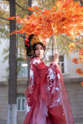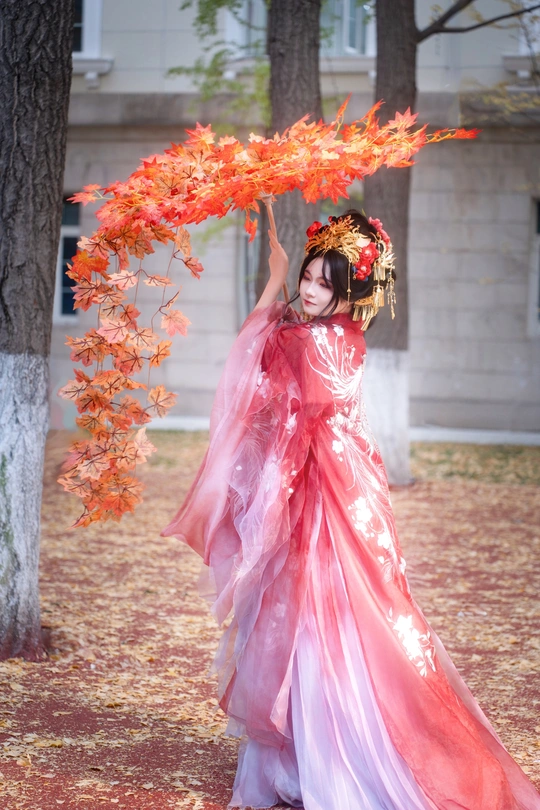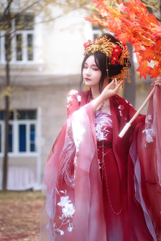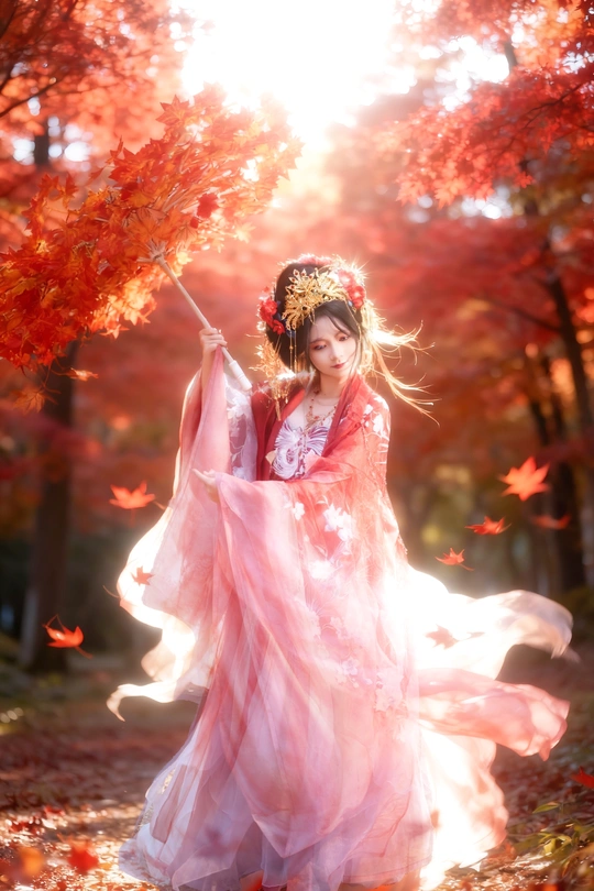2025年初冬,成都电子科大的银杏正黄,1122汉服节如约而至。抱着拍照片库存的心态闯入这场盛会,在路边礼貌抓一位汉服小姐姐拍照。 镜头下,立于电子科大满地金黄之中,光影恰好落在飞仙髻与披帛间,一颦一笑皆是古意。细细修图,更将背景换作红枫林,当现代校园的喧嚣隐去,一幅"人在画中游"的惊艳画面便跃然眼前。