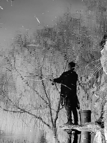 波纹揉碎了岸的轮廓,风把碎叶抛进水里 他攥着钓竿,等一尾鱼撞碎这面摇晃的镜 连影子都浸在凉丝丝的安静里。
