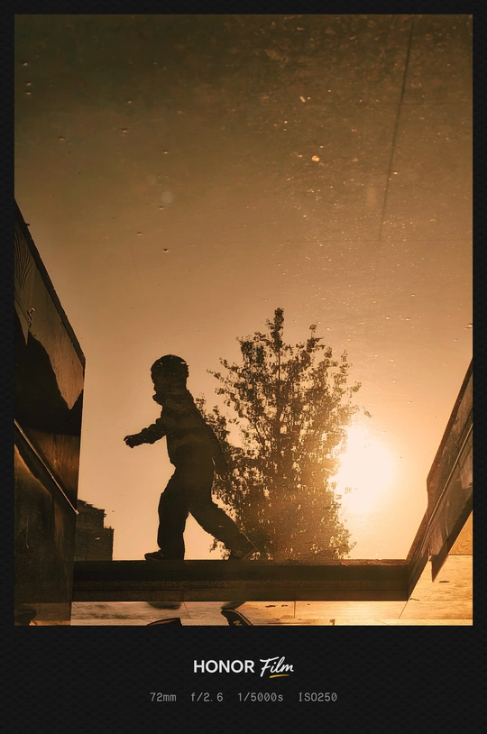 黄昏将暮色揉碎在水洼里,倒悬的树影与行人剪影在涟漪中轻轻摇晃,晚霞为这帧静默的诗行镀上金边。