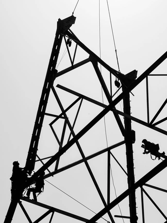 钢构组合,工人辛勤施工。生活不易,劳动光荣。