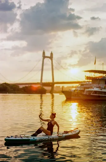 黄昏,玩桨板的女孩。5207电影卷拍摄。