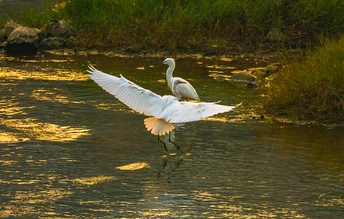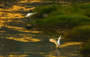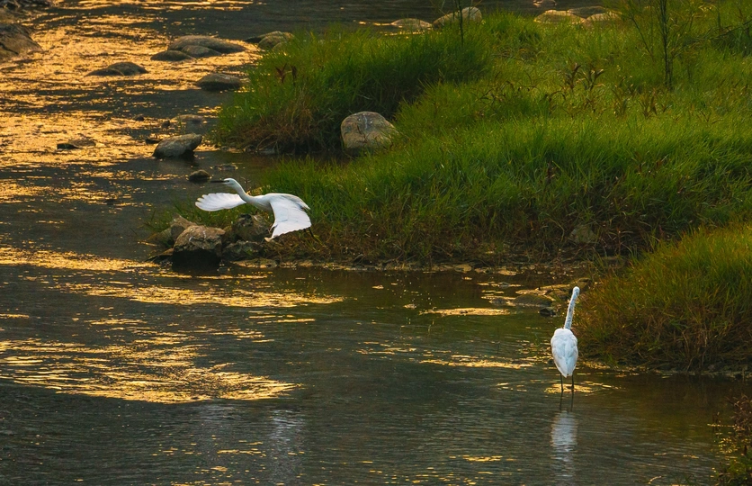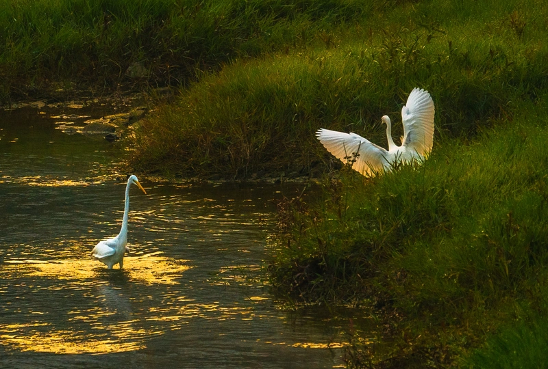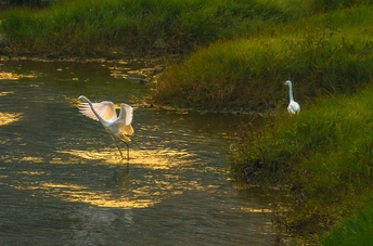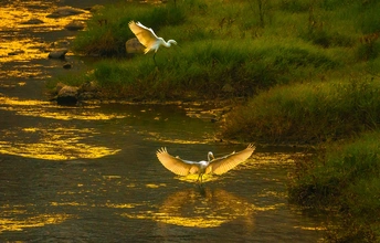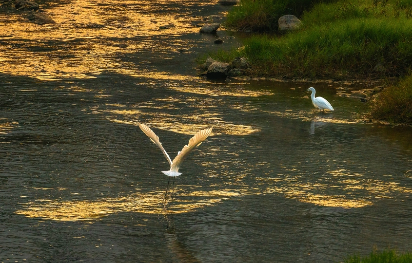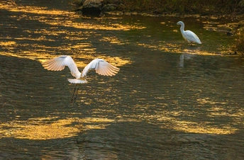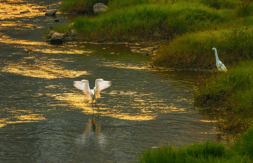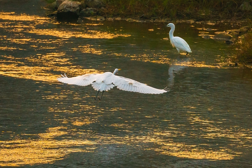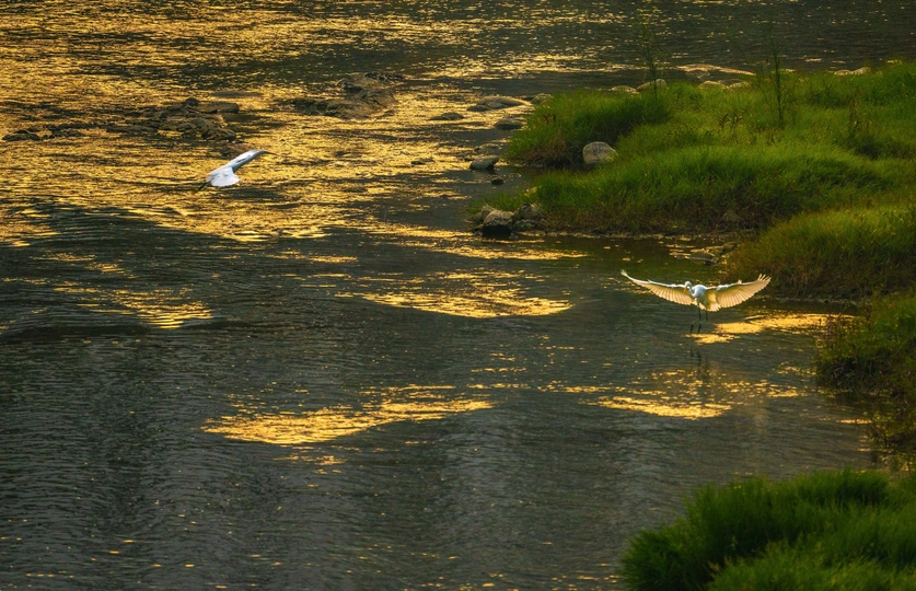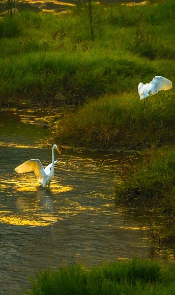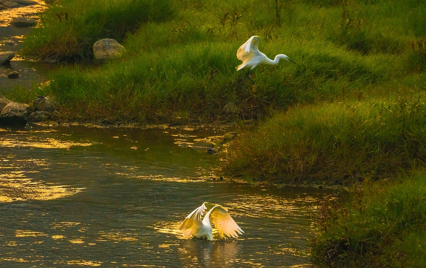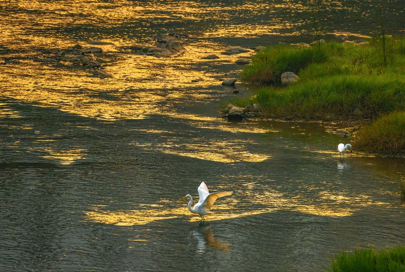 2025年11月30日,贵州省黔西南布依族苗族自治州望谟县县城,灵动鲜活的冬日晨曲中,一对白鹭和镀金般的晨曦阳光共同描绘的自然和谐画面。 冬日清晨的王母河,初升的暖阳为河面镀上一层流动的金箔,粼粼波光随涟漪荡漾,似碎金在水中流转。一对白鹭翩然现身金辉之中,洁白羽翼被阳光染成暖金,每一根羽毛都缀满细碎光粒,熠熠生辉。它们时而弓身探头,喙尖如利箭般精准刺入水面,叼起游鱼的瞬间,水珠随金辉飞溅;时而振翅腾空,修长脖颈舒展如弓,尾羽划过金光,双翼展开时似镀金的帆,在晨空中划出优美弧线,轻盈的身姿在金河之上辗转腾挪,每一个动作都裹挟着阳光的暖意,定格成一幅灵动鲜活的冬日晨曲。 备注:望谟县是国家级北盘江湿地公园重点区域,也是珠江水系主要的生态屏障保护地。