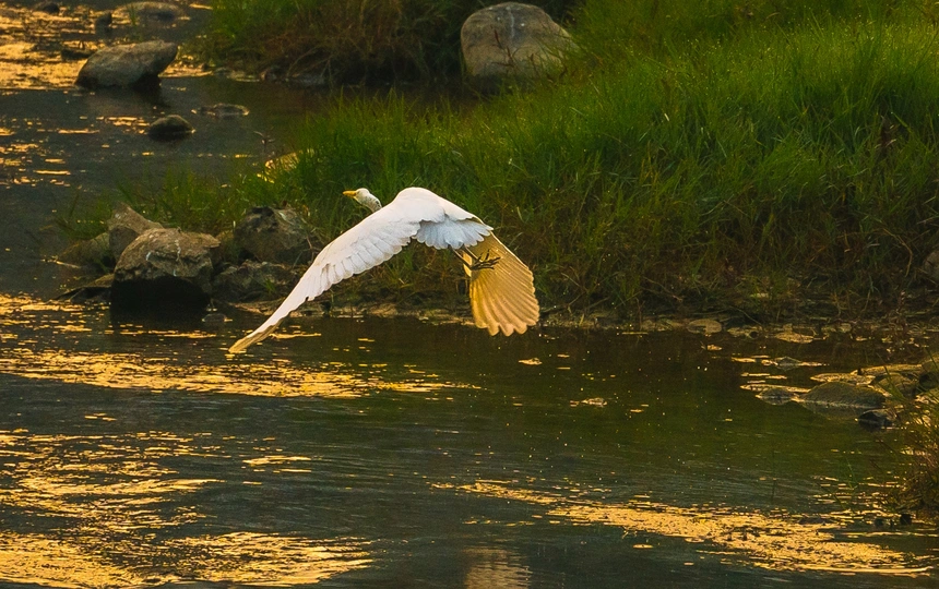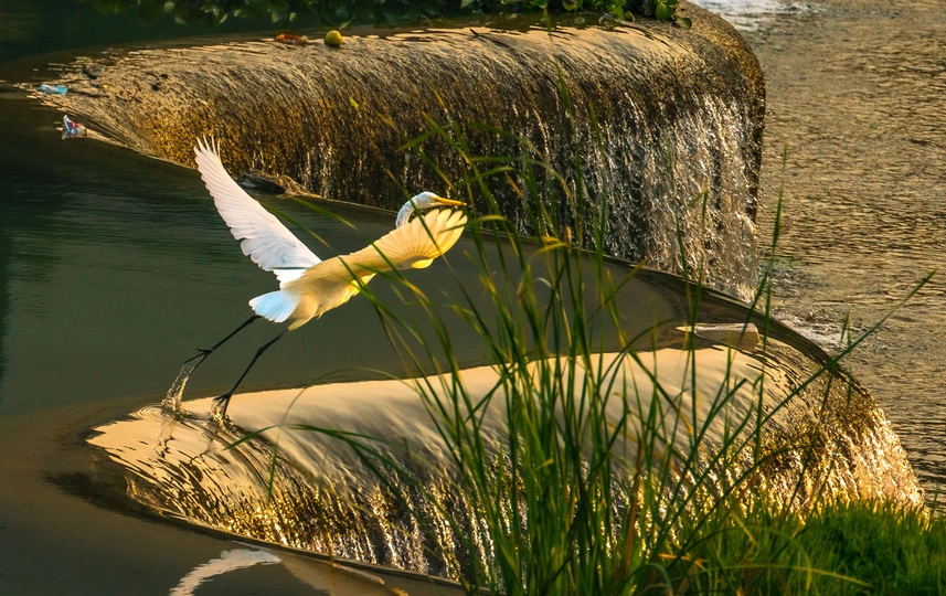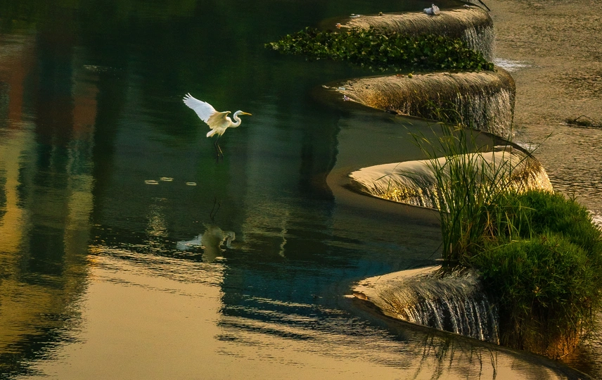 2025年11月30日,贵州省黔西南布依族苗族自治州望谟县县城,冬日拂晓,晨曦如金箔倾泻,王母河瞬间被镀上暖亮光泽,似碎金流淌。白鹭和翠鸟等野生鸟类展翼凌空,掠水时划破金色涟漪,身姿舒展如诗,灵动得宛如跃动的金精灵。 望谟县作为国家级北盘江湿地公园重点区域,也是珠江水系主要的生态屏障保护地。每年各类野生鸟类都要飞到望谟县越冬,小精灵们在或翩跹起舞、或嬉戏逐波、或俯身觅食,每一个姿态都鲜活灵动。这幅生机盎然的生态画卷,既藏着冬日的静谧柔美,更透着自然的鲜活气息,尽显王母河人与自然的和谐之美。