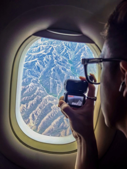 在兰州飞往阿勒泰的路上,没能选到靠窗的我只能看着隔壁的小哥掏出当时刚发布的dji nano记录下进入新疆后连绵的群山