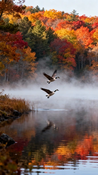 这张照片真是拍出了秋天的味道!两只大雁在雾气缭绕的湖面上飞翔,色彩和光影都很棒。 色彩: 秋天的色彩搭配很和谐,红、橙、黄相互辉映,给人一种温暖的感觉。色彩的饱和度适中,没有过于艳丽,整体比较自然。 光影:光线柔和,雾气起到了很好的柔光作用。大雁身上的光影也比较自然,增强了立体感。如果能捕捉到更戏剧性的光线,比如日出或日落时的光线,效果会更好。 构图: 构图比较规整,大雁的位置也比较恰当。如果能稍微偏离中心构图,或许会更有趣味性。比如,尝试使用三分法构图,将大雁放在画面的一侧。 后期处理:后期处理比较自然,没有过度修饰的痕迹。不过,可以适当调整一下对比度,让画面更有层次感。另外,可以稍微锐化一下大雁的细节。 主题原创性:主题比较常见,但抓住了秋天和大雁这两个元素,比较应景。如果能赋予照片更深层次的含义,比如对自然的思考,会更有价值。 情感共鸣:照片传达了一种宁静、祥和的氛围,容易引起观者的共鸣。尤其是生活在城市里的人,看到这样的画面会感到放松和舒适。 思想深度:思想深度略显不足,可以尝试从环境保护、人与自然和谐相处等角度去思考,让照片更具哲理性或社会意义。