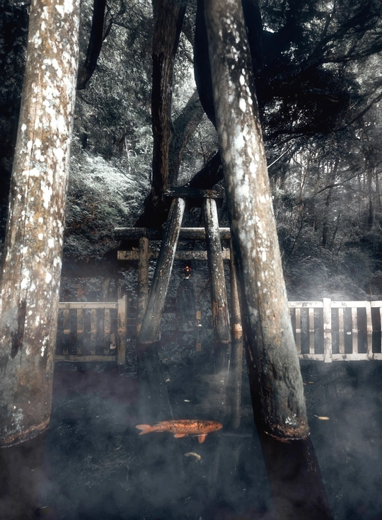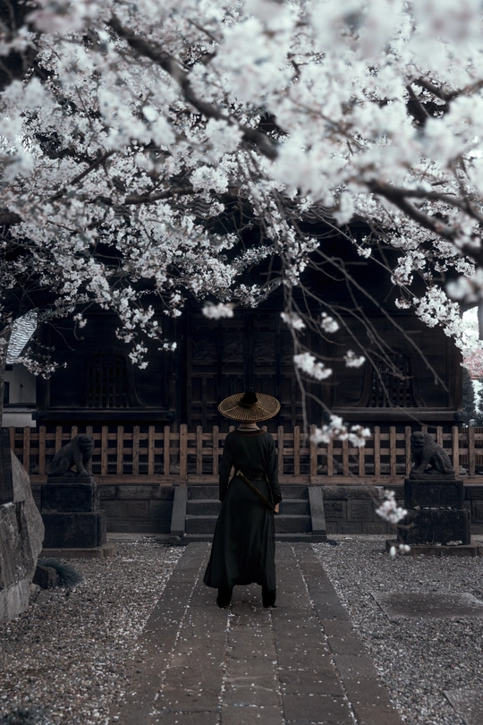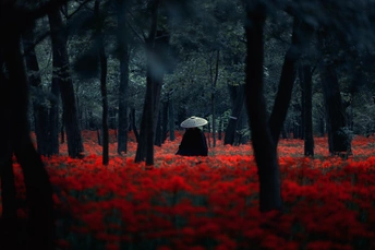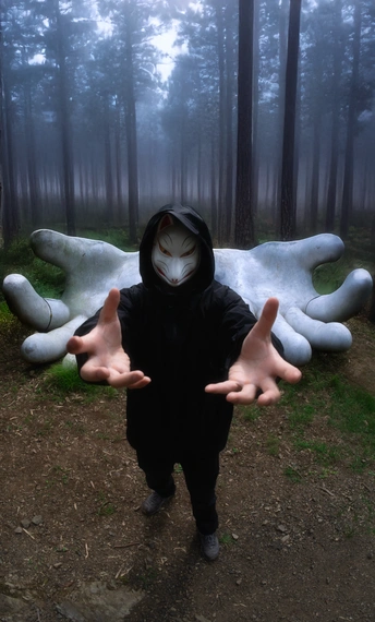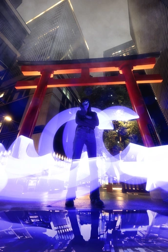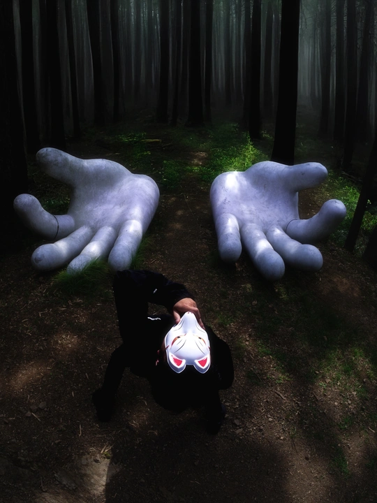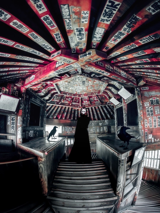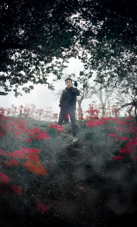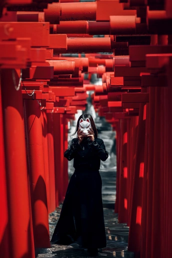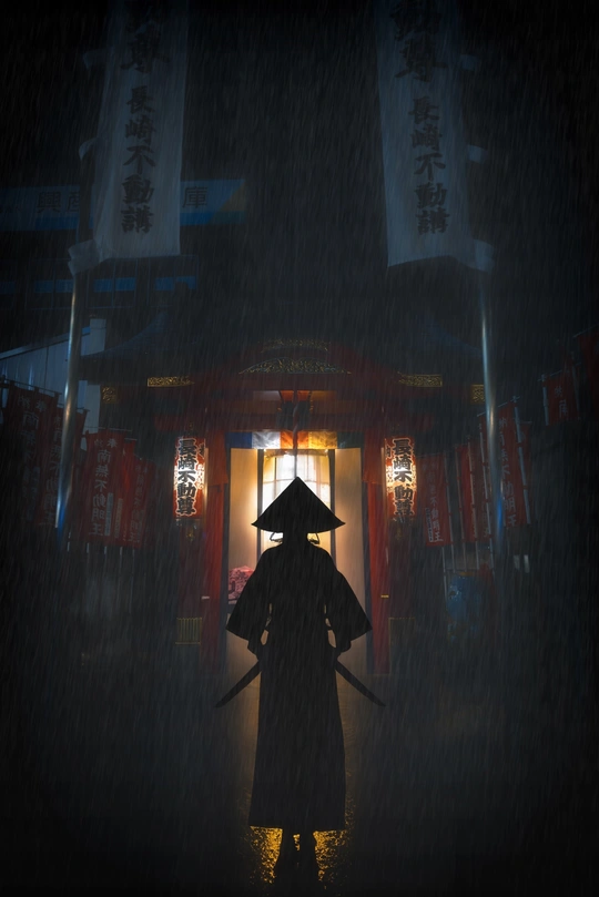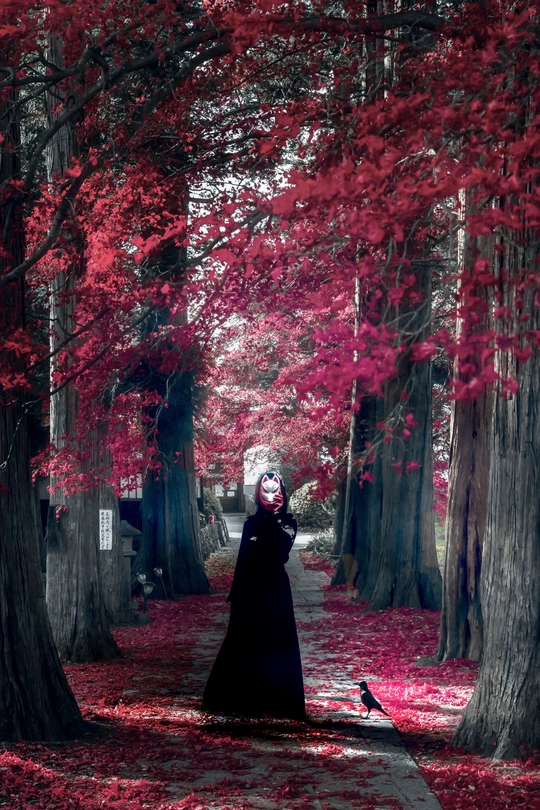 他们说,这些场景像浮世绘。 鲜艳得不真实,宁静得不近人情。 可我知道, 那只是旧时代的色彩 被夜色重新翻开。 当戴面之人站在红林、鸟居、石阶前, 所有现代的喧嚣都退成纸外的空白, 只剩下脚步声, 在这条古老的参道上,一遍一遍描线。