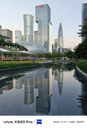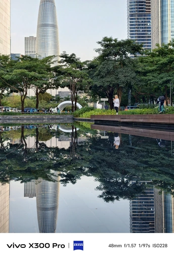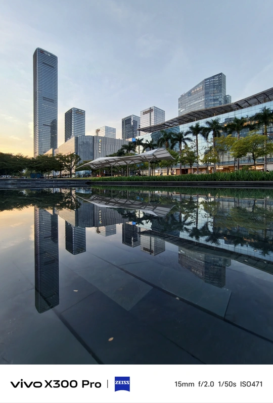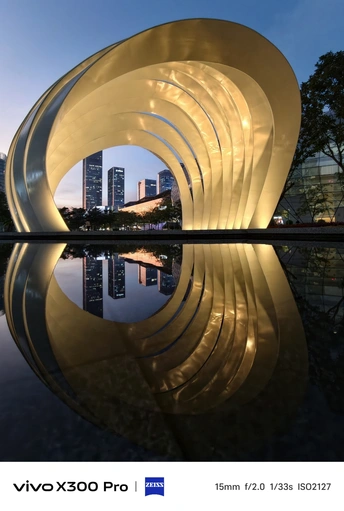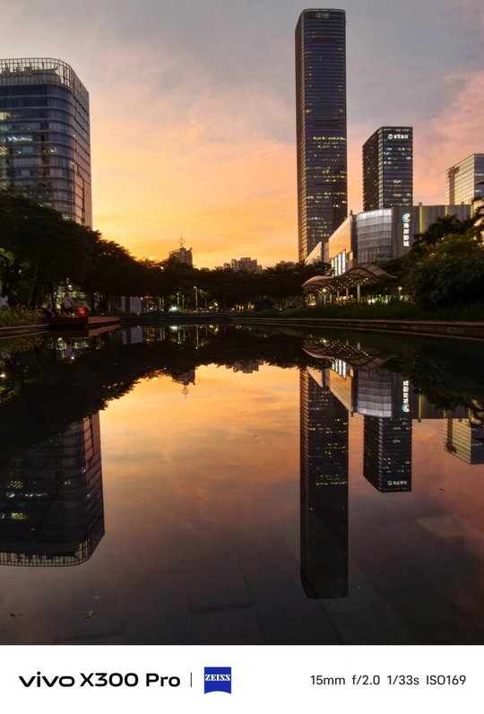 暮色漫过水面时, 楼宇便成了浸在镜里的冰棱。 银壳场馆像沉在水里的月亮, 春笋把最后一缕晚霞, 簪成了自己的锋芒。 风掠过草坪, 把人们的笑语剪成碎影落进波纹里。 🔵Shot on vivo X300 Pro