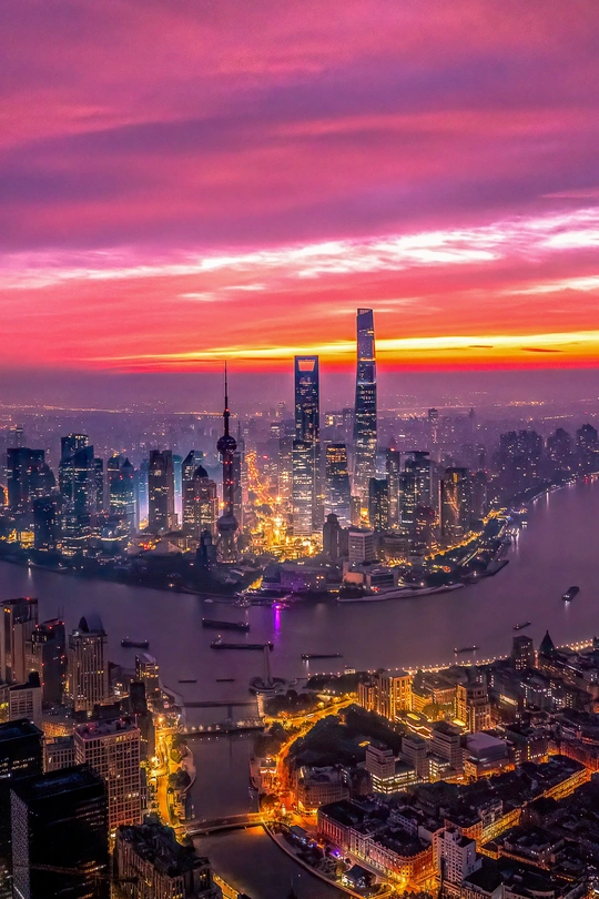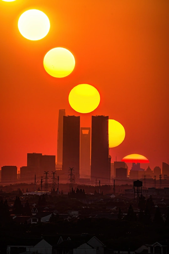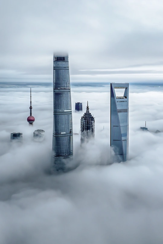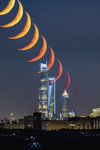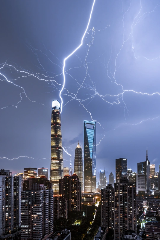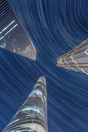 我始终以“城市是自然的一部分”为核心观察视角:陆家嘴作为城市繁华的符号,常被定义为“人工的产物”,但当朝霞、雾、闪电、星轨落在它的轮廓上时,建筑便成了自然情绪的载体——冷硬的玻璃与柔软的云共生,高耸的楼尖与纤细的月相碰,这些瞬间让“城市”不再是隔绝自然的墙,而是自然在人间长出的另一种形态。我想通过这十二帧画面,让观者看见:城市的脉搏,其实一直和天地的韵律同频跳动。