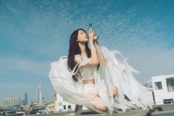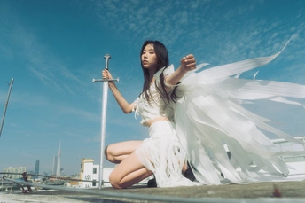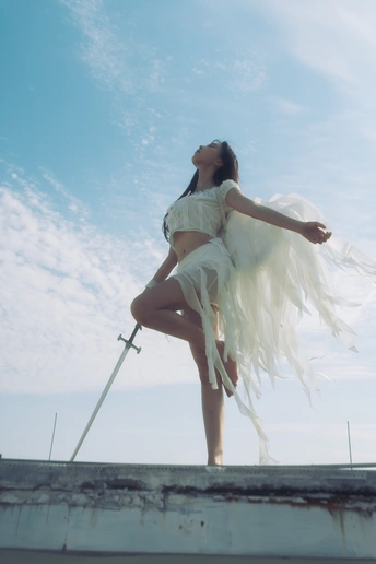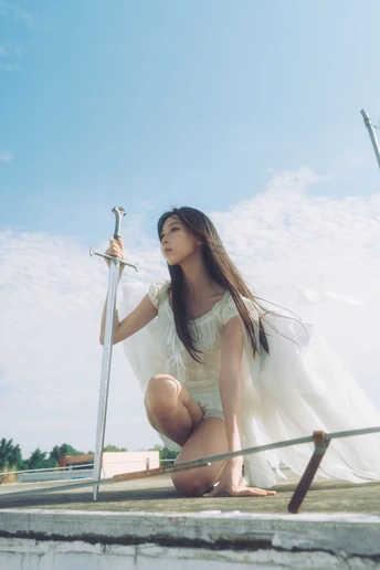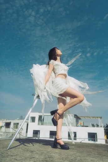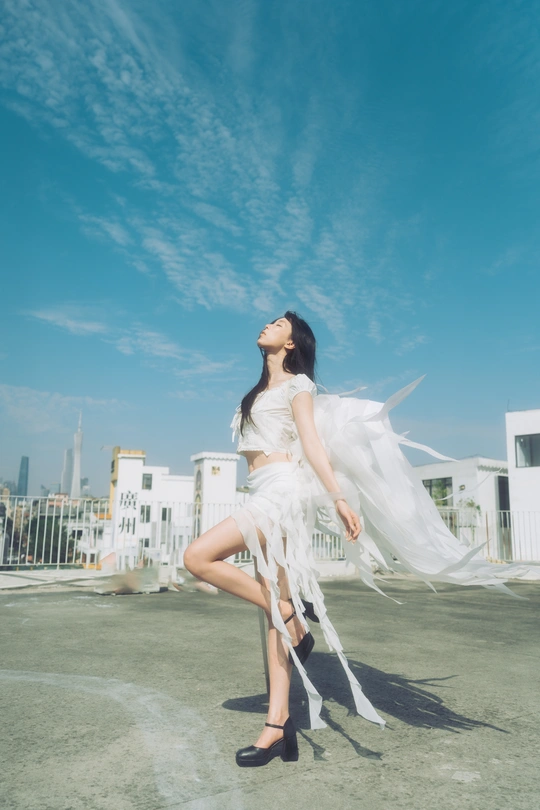 降落人间的天使👼🏻 拍摄选择没人的天台 时间下午三点后避开猛烈太阳 加1/4黑柔滤镜 高光的地方有梦幻的感觉 机身:索尼fx2+索尼28-70gm 创意外观滤镜用最新的fl3 低饱和度,日系风,天空更蓝