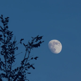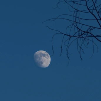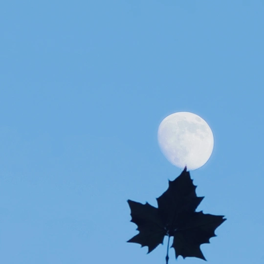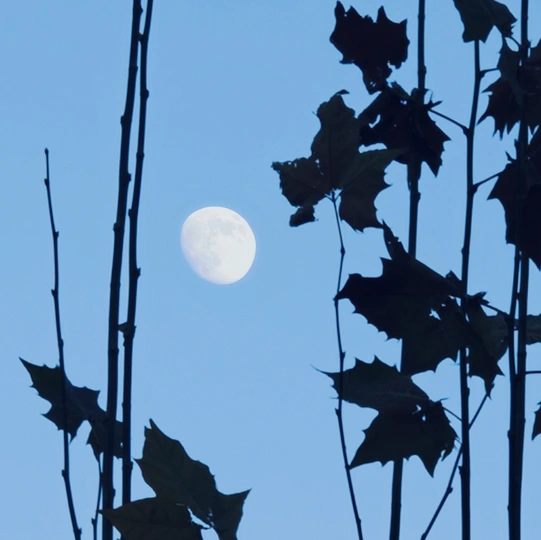 我的摄影日记|冬月 抬头撞见冬月悬在夜空, 像颗被擦亮的银纽扣。 枯枝在月色里舒展成写意的线条, 叶尖还凝着未化的霜花, 风过时影子在地上轻轻摇晃, 像谁在低声哼着旧歌谣。