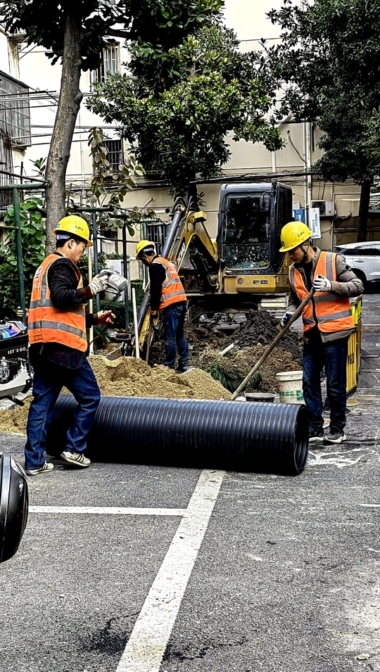 上海静安区利用冬春少雨季节,拿出补助政策,调集施工力量,有计划地对城中老旧小区更换新材质、大口径的行洪排水管道。