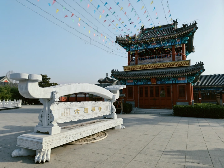 六祖禅寺藏在河北涿州清凉寺片区,已经静静待了快1500年~历史上它也叫文殊兴隆寺、兴隆禅寺。2010年原址重建,2022年重新开放,古寺新生,真的值得一探! ✨布局特色 寺院沿中轴线展开,四座主殿+六座配殿,总面积近5800平方米,已是涿州必打卡的文化地标! ?六祖慧能小故事 他可是咱们涿州人!年轻时在寺庙打杂,却因一句“菩提本无树,明镜亦非台。本来无一物,何处惹尘埃。”被五祖选为继承人,成为禅宗六祖。 他创立的“顿悟”禅法,让佛教变得更简单、更中国~可谓是禅宗的真正创始人,也是中国佛教的真正始祖。留下的《六祖坛经》更是唯一一部由中国人写的佛经! ✅这部中国特色的佛教经典,以其“佛性论”为世界观,“顿悟说”为方法论,突出了主观能动性,在中国思想史上是个大跃进。 ✅在英国伦敦大不列颠国家图书馆广场,矗立着世界十大思想家的塑像,其中就有代表东方思想的先哲孔子、老子和惠能,并列为“东方三圣人”。