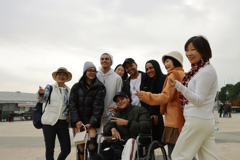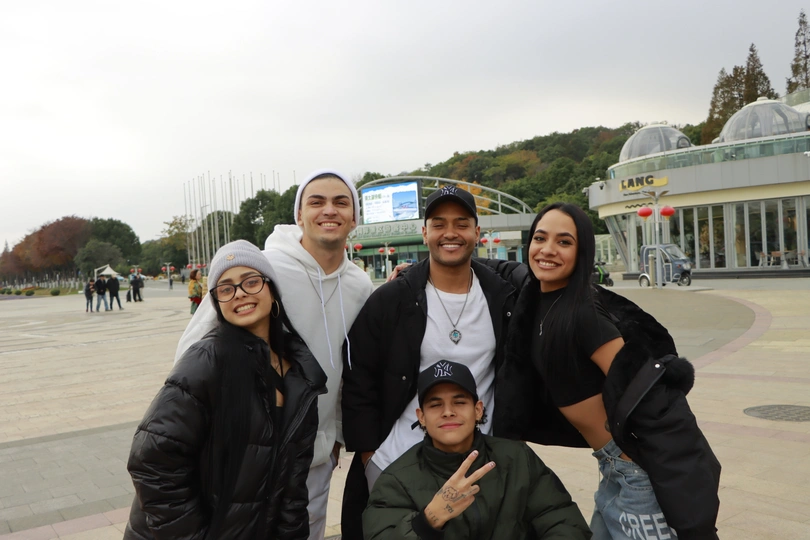 在旅摄景区碰到几个西班牙来的年轻小哥小妞想让我给他们拍个合影!语言不通让我有点为难拍了照往那发给他们,想不到的是一个小伙当场拿手机让我加他微信意思照完事后发给他,真是聪明马上猜到我想法了!也许这就是他们通勤中国各地留影的㊙️方,最后我也把我们同行的朋友一同加进了合影。