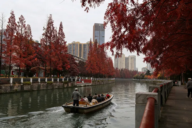 晨光漫过后子门的檐角时,府河正把粼粼波光揉进秋波里。岸边的树褪去青绿,染着桑红与金黄,风过时,叶影落在青石板路上,也落在缓缓划过河面的船舷。 偶有行人停步,看水鸟掠过水面,听远处市井的声响漫过河岸——这是成都最温柔的日常,后子门的烟火与府河的流水,正一起把秋日的时光,酿成了可细品的软。
