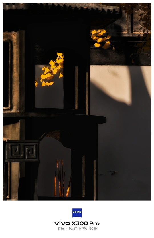 当千年银杏把秋光酿成碎金,便顺着古寺飞檐的弧度,漏进朱红窗棂的方格。檐角翘走半缕云,叶尖坠着一捧暖,连光影都裹着禅意——是砖瓦与树影的私语,是岁月把季节焐成金黄。不必寻秋,抬眼处,古檐裁碎的晴空里,每片银杏都在讲:这是人间最温柔的“檐下鎏金”。