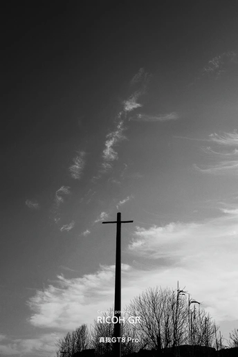 冬风掠过枯枝,将云絮揉成流动的线条。光影在黑白格子里切割时空,电线杆是唯一的坐标。风与光从未同步,却在取景框里达成永恒的和解。