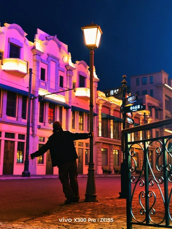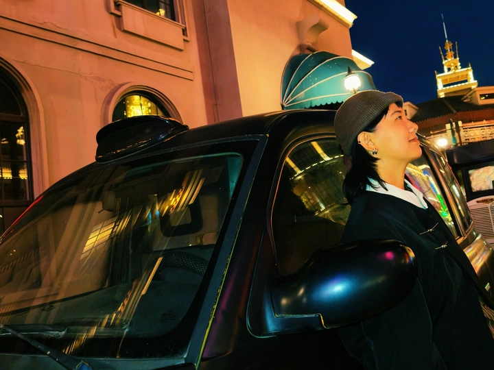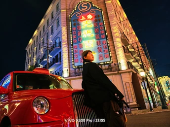 曾经也是电影人的我一说起横店就热血沸腾 拍照灵感也是爆棚 在梦外滩的这个夜晚 漫步在绚烂的场景中 脑海中想起无数喜欢的电影场景 那就用手中的镜头记录下吧! 📷霓虹灯场景,适合仰拍,更有电影感,让背景更梦幻,或者形成虚化的光斑 📷可以找到橱窗之类的反光,拍出镜面空间 📷借助路灯,街边的复古汽车互动拍摄