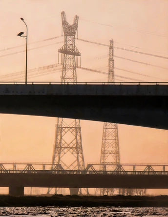 在进入城市的南边,黄河静静的流淌而过。进入冬天,河面便会慢慢的封冻。作为进入城市而必须经过的大桥,一共有四道从西往东排列在河面上。常常行驶其上,从未觉得其雄伟,站在坝上,在夕阳的照射下,才知其高大雄伟之处,身躯异常厚实。