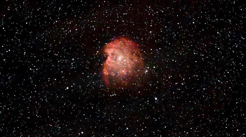 位于猎户座边缘的红色发射星云,距离地球约6400光年,由气体和尘埃构成形似灵长类头部的结构特征。 📷:DWARF3 🔧:赤道仪 30s 60 双窄带 101张