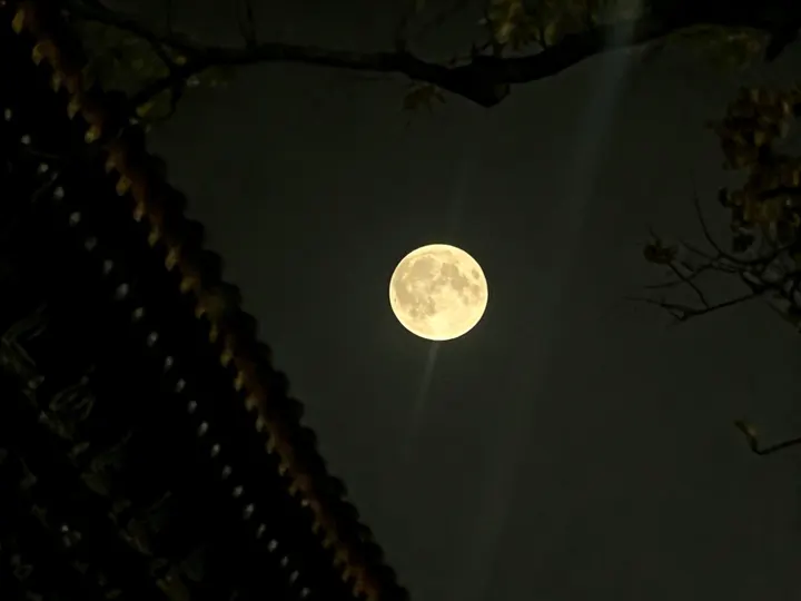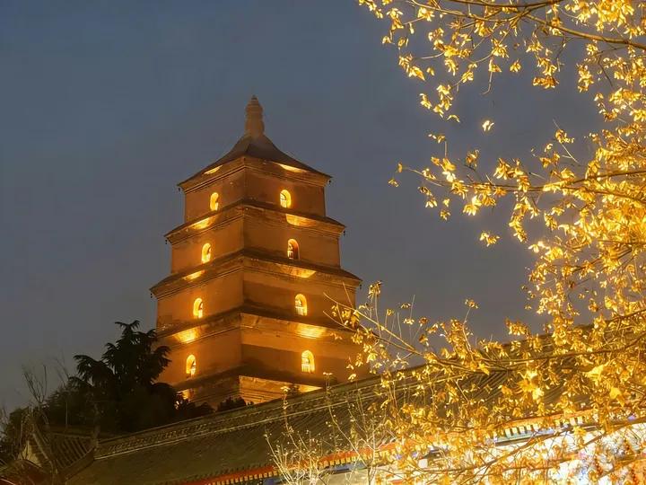 长安的夜,被一轮圆月揉得温柔。清辉漫过古建的飞檐,枝叶在月色里描出疏影,那轮月悬在墨色的天,像揉碎的玉盘,落满了千年的诗意。 大雁塔立在夜色中,灯火晕开砖塔的纹路,月光与塔影相拥,风掠过金黄的枝叶时,仿佛连时光都慢了下来,只留这一城的月,一塔的静,在长安的秋夜里缓缓流淌。