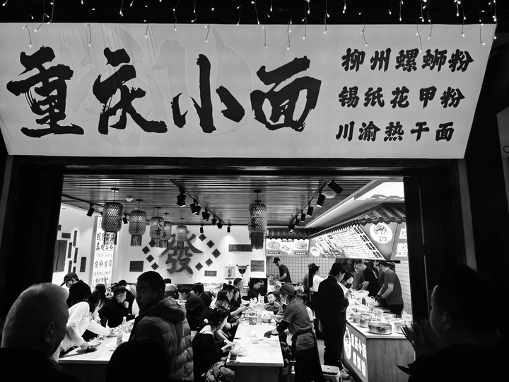 裹满红油的重庆小面,裹着螺蛳香的柳州粉 热干面的芝麻香还没散,花甲粉的锡纸味又飘过来 这馆子不大,装得下川渝的辣,也盛得下烟火的暖 坐下来嗦一碗,日子就热乎了
