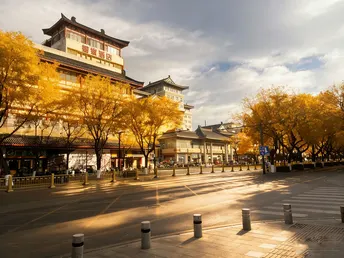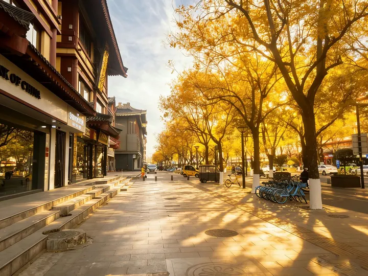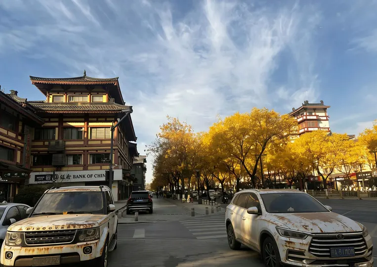 西安的长街褪去了人潮的喧嚣,只留秋阳与金叶缠绵。 光影透过枝桠,在青石板路上织就斑驳的鎏金,金黄的叶子或悬于枝头、或轻铺路面,每一片都染着深秋的暖意。没有闲杂人影的街道更显静谧,风过时,叶影晃动,光影流淌,仿佛整座城的秋意都沉淀在此,只剩纯粹的长安秋景,在时光里静静发光。