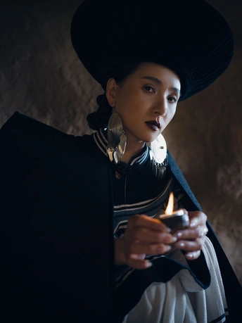 光影将时间揉皱,我们只窥见银器折射的片段:耳环的晃动,火焰的颤抖。