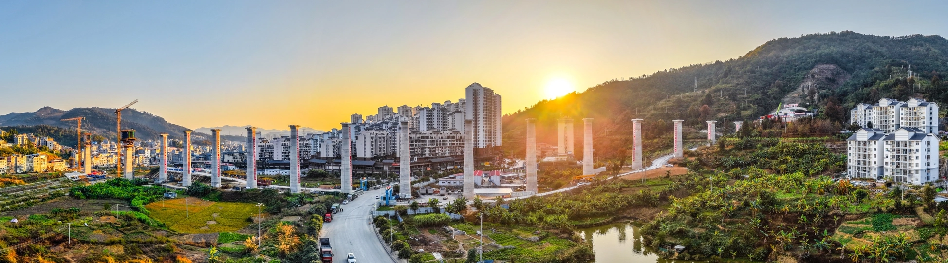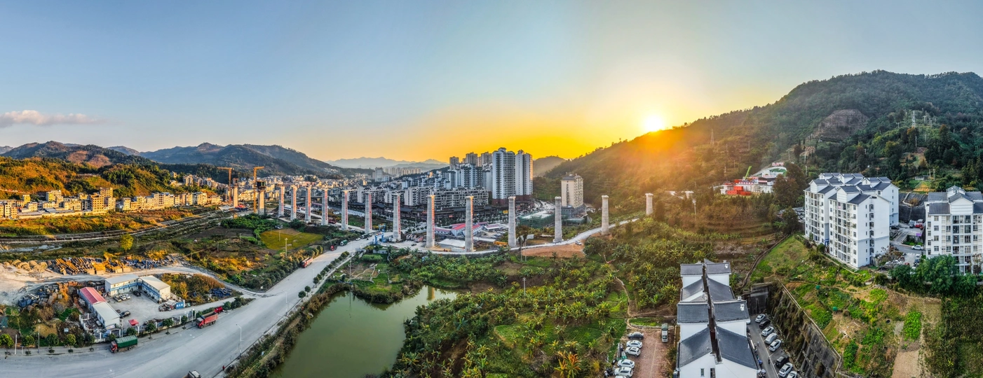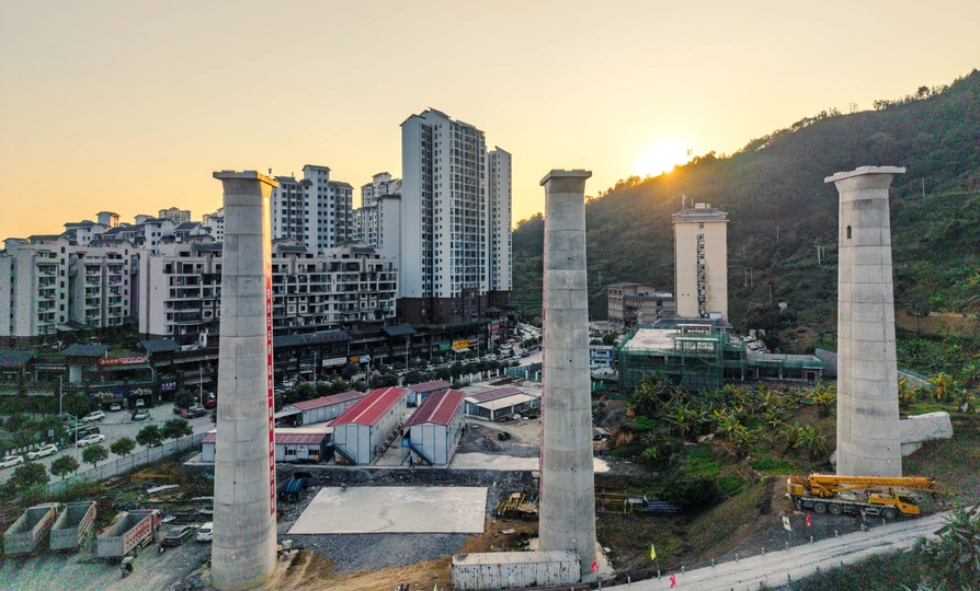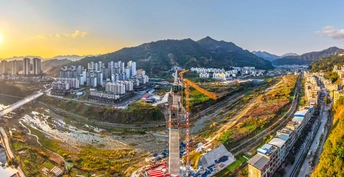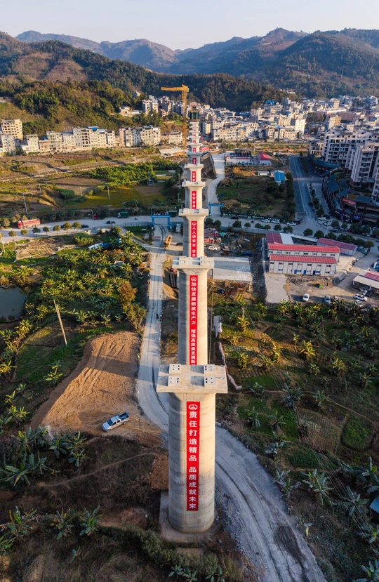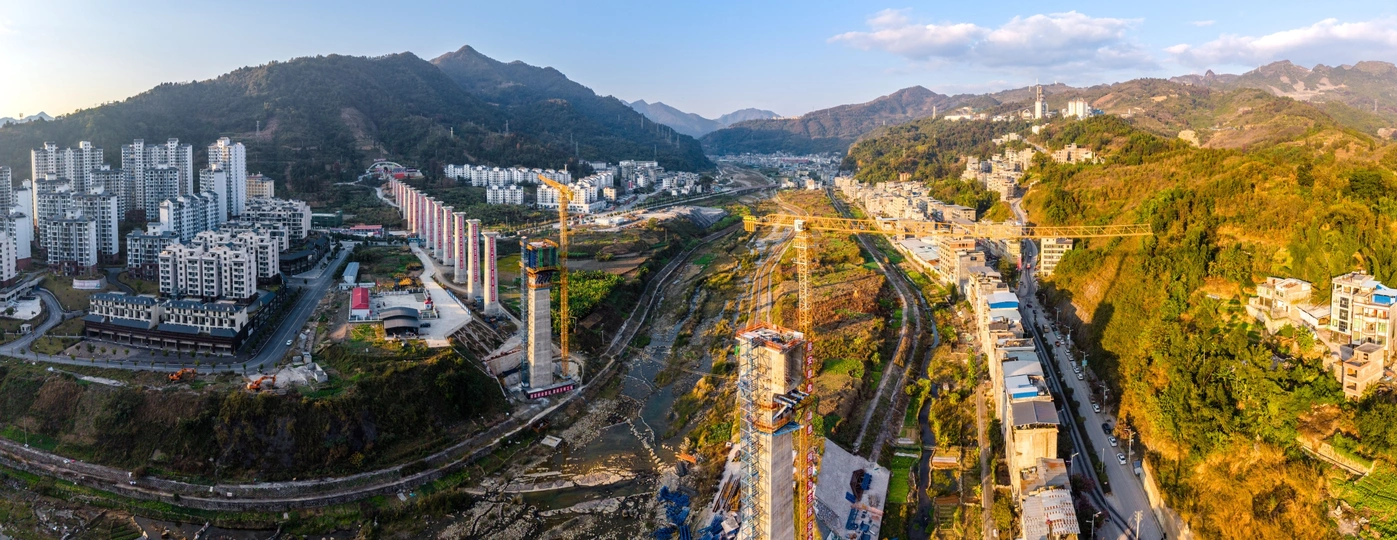 2025年12月7日,贵州省黔西南布依族苗族自治州望谟县县城,在新建黄桶至百色铁路贵州段工程望谟河特大桥(望谟河特大桥全长1287.018米,先后跨越市政道路、望谟河、209省道,穿越居民区)建设工地,巨大的跨河铁路大桥桥墩屹立,桥下和周边城市的高楼林立,车来车往,成为小城靓丽的一道风景线。 由中铁大桥局集团有限公司承建的黄百铁路(贵州望谟段)项目建设持续发力,抓进度、保节点,全力以赴推进项目建设。黄百铁路望谟县标段线路总长32.029km,为国铁I级单线铁路,设计时速160km/h。主要施工内容包括隧道7座,占比86.1%,正线桥梁8座,占比7.5%,车站3座,其中会让站2座,中间站1座。 望谟,这座王母河穿城而过,南盘江、北盘江和红水河环绕拥抱的城市,抢抓历史机遇打赢打好综合交通大会战,做好“铁(铁路)高(高速公路)水(蔗香港航运)”三篇文章,在已建成的紫望高速(北)、罗望高速(东)、望安高速(西)的基础上,正在建设的红水河跨江大桥将贯通望谟至广西自治区百色市高速公路(南),以及正在建设中的黄百铁路,力争将望谟打造为东西南北综合交通枢纽,努力为交通强省贡献望谟力量。