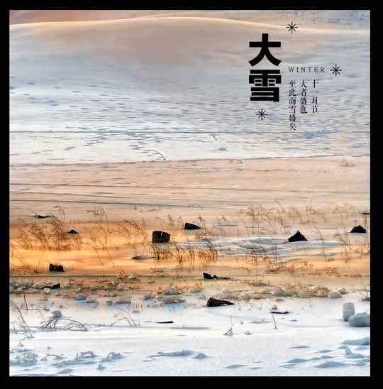 大地已被积雪覆盖,白茫茫一片,唯有倔强的小草,虽然失去了本色,但依然是铮铮铁骨,傲立在雪中。那一抹橙红色,是夕阳留给大地的暖意,也为不失生命的小草注入希望。
