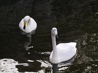 动物园里的天鹅为了想吃游客投喂的食物,游到接近岸边的地方来了。这样才有可能拍到它们。