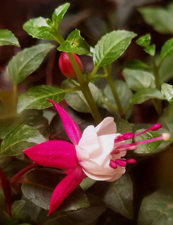 倒挂金钟花(学名:Fuchsia hybrida Voss.)是柳叶菜科倒挂金钟属半灌木或小灌木,别称吊钟海棠、灯笼花。