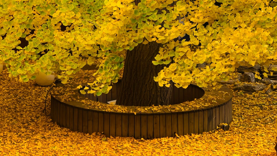 金黄染透银杏叶,风一吹,落叶带着颜料簌簌落下,把大地涂成暖融融的模样。原来最治愈的色彩,从来都藏在自然的馈赠里