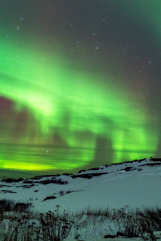 「当-35℃的寒风穿透三层冲锋衣时,我终于读懂:有些光,注定要在黑暗里等」 ▸ 追逐:与极夜的博弈 连续7天,我把帐篷扎在北纬78°的苔原上。极夜的北极圈没有日出,只有永恒的蓝调时刻——相机锂电池在-25℃会自动关机,我只能把备用电池塞进羽绒服内袋,用体温维持它的「生命」。 第5个凌晨,极光KP指数突然跳至5级。抓起20mm镜头狂奔时,三脚架在结冰的冻土上打滑,金属云台瞬间粘住了裸露的指尖(后来才发现掉了层皮)。 ▸ 等待:237张废片的答案 「光圈f/2.8,ISO 3200,曝光15秒」——参数背到麻木,却抵不过突然出现的地磁暴。绿色光带刚在取景器成型,一阵暴风雪卷着冰粒砸向镜头,UV镜上的霜花让画面变成模糊的光斑。 当第238次按下快门时,极光突然爆发成罕见的「红色帷幕」。相机显示屏在低温下反应迟缓,我呵着白气盯着直方图,直到确认暗部细节没有死黑,才发现睫毛已经结了层冰晶。 ▸ 铭记:比极光更亮的是坚持 现在回看这张照片,绿色光带像大地的脉搏,红色极光如神明的裙摆。但我永远记得:按下快门的瞬间,相机金属外壳粘住了我的掌心,而取景器里的光,却烫得像从未熄灭的理想.
