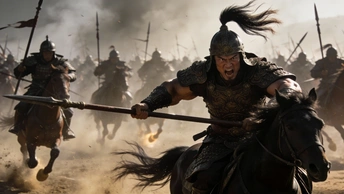 引擎是马蹄的重奏 甲胄在扬尘里抛光 枪尖挑破云的灰幕 把风撕成呐喊的形状 他们是移动的铁 在大地的褶皱里冲锋 每一次震颤都溅起 比鼓点更烫的浪 不必问旗帜的去向 此刻的烈马与嘶吼 正把史诗 钉进风的脊梁 而天地倾斜的弧度里 信念是唯一没被踏碎的 光