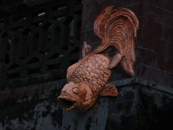 红砖古厝间,这尾红鲤似从岁月深处游来,衔着一脉红火的祈愿,在斑驳墙影里漾开吉祥的涟漪。